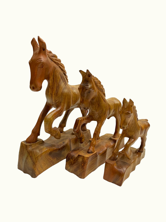 Handcrafted Wooden Horse Set, The Best Horse Statues.