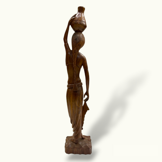 Beautiful Wooden Lady Statue, Village Women Carrying Water Pot.
