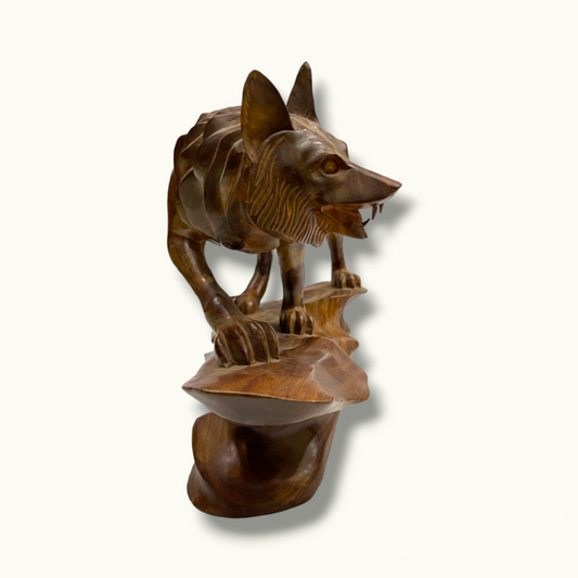 Beautiful Wooden Fox Statue, Fascinating Wooden Fox Sculpture.