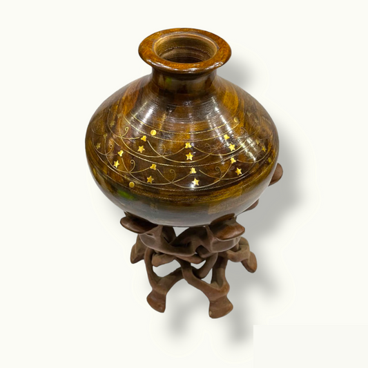 Unique Wooden Camel Stand With Matka, Stunning Pot And Stand.